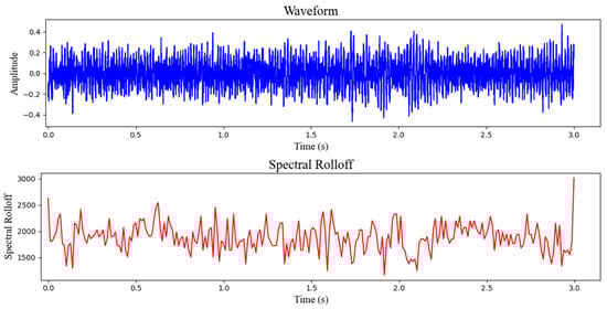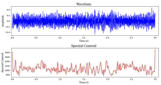 Here, fs represents the signal’s sampling rate, and N is the FFT size. Figure 7 shows a visual representation of the variations in the amplitude of the audio signal over time and the spectral centroid of an audio signal.