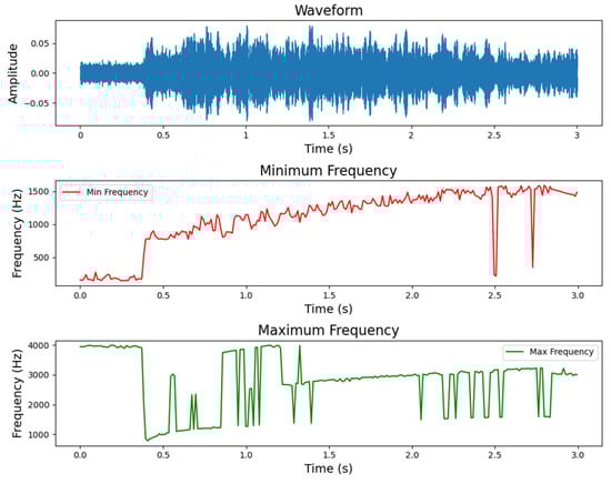 where D is the amplitude of the spectrum and ref is the maximum amplitude of the particular frame. The extracted maximum and minimum frequency of a particular audio signal is shown in Figure 12.