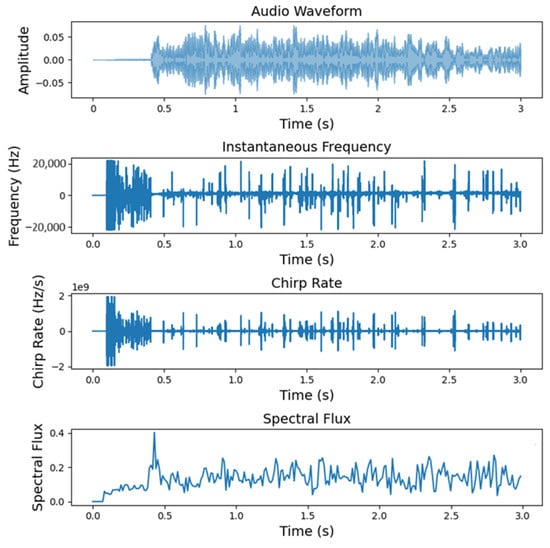 IF: IF represents the rate of change in the phase of an audio signal at any specific moment. This metric offers valuable insights into the frequency characteristics of a signal as it progresses over time, making it particularly beneficial for the analysis of non-stationary signals where frequency variations may occur. IF is calculated by utilizing the Hilbert transform for the real-valued signal to obtain the analytic signal, which has given the amplitude and phase information of the signal. Subsequently, IF is computed using Equation (14) from the instantaneous phase of the analytic signal. The mean instantaneous frequency is simply the average of the computed instantaneous frequencies over time.