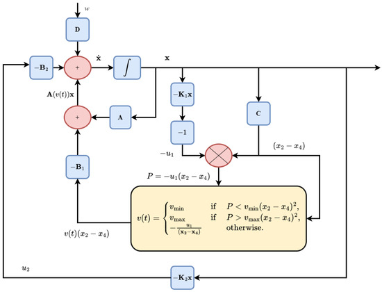 Equation (22) depicts the closed-loop state-space matrix of the system under the feedback control law: