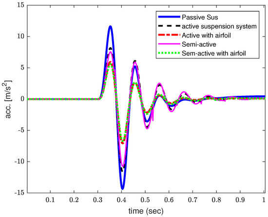 Car body acceleration for various suspension systems.