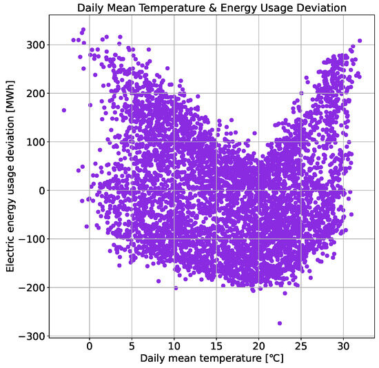 Figure 8 showed the relationship between daily mean temperature and energy usage deviation. It shows that higher temperatures generally lead to a decrease in energy usage deviation, whereas lower temperatures cause an increase.