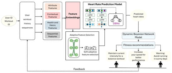 Model architecture of the proposed approach for personalized heart rate prediction to enhance fitness recommendations.