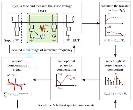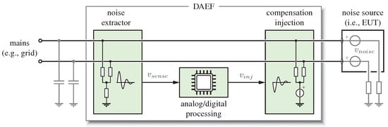 - Bendicks, A.; Dörlemann, T.; Frei, S.; Hees, N.; Wiegand, M. Active EMI Reduction of Stationary Clocked Systems by Adapted Harmonics Cancellation. IEEE Trans. Electromagn. Compat. 2019, 61, 998–1006. [Google Scholar] [CrossRef]