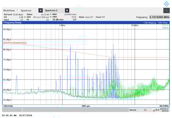 - Bendicks, A.; Gerten, M.; Frei, S. Active Cancellation of Periodic CM EMI at the Input of a Motor Inverter by Injecting Synthesized and Synchronized Signals (S3-AEF). IEEE Trans. Power Electron. 2022, 37, 11951–11961. [Google Scholar] [CrossRef]