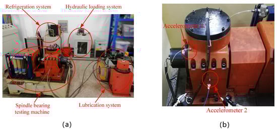 Figure 4. The aero-engine bearing test bench of the private dataset in Hefei University of Technology: (a) the components of the test bench and (b) accelerometer measurement locations.
