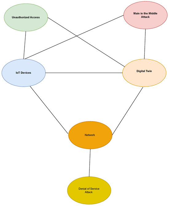 Digital Twins have been utilized in various fields to enhance cybersecurity. They are particularly valuable in cyber–physical systems (CPSs), where they mirror the state of IoT devices, helping to detect, analyze, and mitigate threats in real time [10]. For instance, Suhail et al. (2022) [13] introduced a secure communication layer between the Digital Twin and the physical device, aiming to mitigate cyber–physical threats during real-time interactions. Similarly, Empl and Pernul (2023) [14] proposed a security analytics model that aligns with Digital Twins to integrate data generated by DT with other applications, enhancing the ability to detect and mitigate cyber threats.