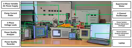 Electric energy is essential for all electrical machinery, and globally, motors account for approximately 43–46% of the total power consumption [1]. Improving the efficiency of electric motors plays a vital role not only in enhancing economic and environmental sustainability but also in reducing energy consumption and carbon dioxide emissions [2,3]. The efficient operation of motors, particularly in industrial and manufacturing processes, is crucial for increasing productivity and reducing operational costs [4]. In this context, motor fault diagnosis has emerged as a critical technology for extending motor lifespan and preventing emergency shutdowns [5]. However, conventional studies have primarily relied on vibration signals or current signals, which have limitations in recognizing complex fault patterns [6,7]. These methods struggled to accurately identify fault types [8] and often suffered from performance degradation in real-time analysis [9].