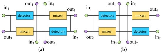 In Formula (5), represents the flow path of the liquid from the input port to the component or from the component to the output port. Furthermore, the flow path of is . only contain two connect pairs, which are and , where and represent the interfaces of the component. represents the flow path of the liquid from one component to another; it passes by two components. can be used to transport a liquid from one component to another component and contains three connect pairs. When the i-th path of uses and as input and output ports, it is equal to 1; otherwise, it is 0. Assuming the connection pair formed by the two component interfaces of the j-th path of is and if both and - exist in the connection pair formed during the high-level synthesis stage, is equal to 1, ; otherwise, it is 0.