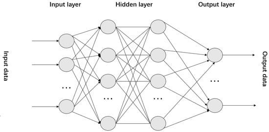 The deep learning method has found widespread applications in various fields such as natural language processing, image recognition, and the Internet of Things. Figure 1 illustrates the basic structure of a DNN network, which can be described as three parts. The input layers receive the input data matrix from different users and transmit it to the hidden layers. With interconnected neuron nodes in the hidden layers, the DNN network enhances accuracy in data identification. As the data enter the hidden layer, the function expression can be denoted as