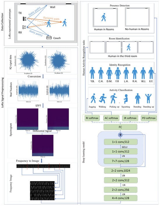 The proposed system aims to advance human activity recognition (HAR) by leveraging LoRa wireless RF signal preprocessing and deep learning techniques. The system architecture is illustrated in Figure 1.