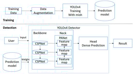 YOLOv4 one-stage detector architecture used in the proposed approach.