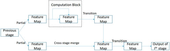 The Backbone stage of the YOLOv4 One-Stage Detector is implemented using the CSPDarknet53 network. The architecture of CSPDarknet53 is shown in Figure 3 below. CSPDarknet53 exhibits excellent performance in feature extraction, a crucial aspect for accurate object detection. In comparison to CSPResNext50, which excels in image classification, CSPDarknet53 demonstrates superior results in object detection. The architecture of CSPDarknet53 introduces the concept of cross-stage partial connections. At each stage, features are divided into two parts: one part enters the computation block implemented by DenseNet, and the other part is directly sent to the next stage. Finally, these two parts are concatenated. Additionally, a transition layer is added to the backbone to improve parameter utilization. The cross-stage partially connected architecture of CSPDarknet53 improves information flow, enhances feature representation, and reduces computation time. This results in better localization and classification of objects in UAV images.