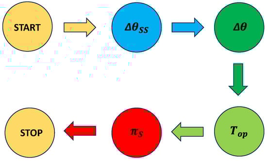 Knowledge of the operative temperature Top (Equation (1)) for each functioning condition permits the calculation of the thermal cycles to which the system/line is subjected. More in detail, the number of thermal cycles occurring in an annual time interval is considered and the maximum temperature of these thermal cycles is identified. Finally, a modified formula of the Norris–Landzberg model, which evaluates the fatigue mechanism acceleration due to thermal variations, is applied to calculate the thermal stress πS value. It is presented in the FIDES RPM [5] and it is reported in Equation (4).