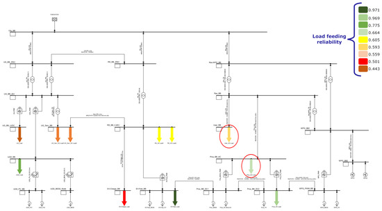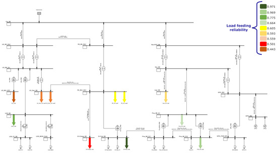 Figure 13. Map of load feeding reliability for considered grid loads.