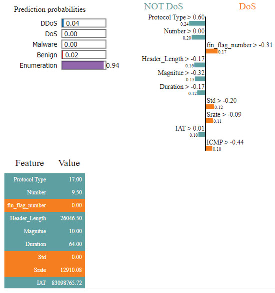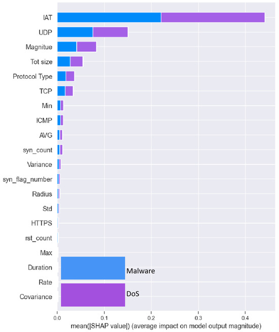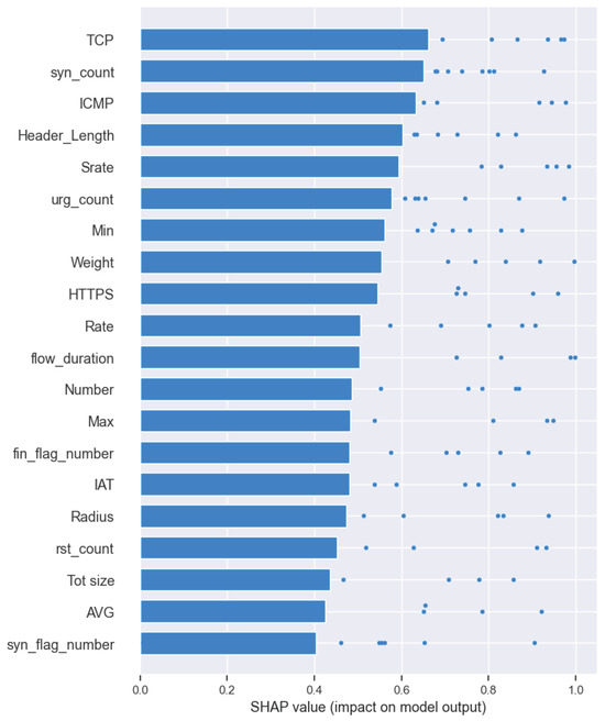 To provide additional insights and forensics into NIDS models, Shruti et al. [39] only explored the visual LIME explainability using naturally transparent machine-learning algorithms, such as decision trees, random forests, and SVM. Another approach [40] using the SHAP explainer investigated a deep-learning approach named the trustworthy explainable artificial intelligence and enhanced krill herd optimisation intrusion detection system to detect breaches in IoT-enabled CPSs. Using the NSL KDD dataset [41] and the CICIDS 2018 dataset [38], their explanations using SHAP yielded insights towards the significant impact of training features in terms of the proposed NIDS model classification accuracy. Mohammed [42] proposed packet-based efficient and explainable IoT botnet detection using machine learning. The SHAP discussions using the Shapley additive explanation also provided transparency to the classifier’s prediction process.