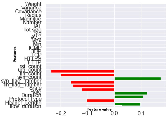 To satisfy the requirements of an efficient NIDS model, the Feature Selection (FS) method, comprising viable features from the Pearson Correlation Coefficient (PCC) and Decision Tree (DT) filter algorithms, is adopted. The Filter FS method, in the domain of network traffic classification, outperforms other methods such as wrapper and embedded due to its computational efficiency and accuracy yielding [47]. Employing each filter FS method, i.e., the PCC and DT in this work, exhibits a distinctive approach and classification performance in terms of accuracy. By carefully measuring the natural cutoff points in the feature distributions, 0.8 is chosen as an appropriate threshold to select the top 30 traffic features of the DT and PCC methods using the Scikit learn Min–Max Scaling function.