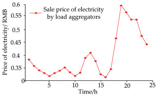 To maximize the profits of the load aggregators, the price of electricity they sell to the grid increases during peak periods at noon and in the evening. For example, at 19:00 in the evening, the price of electricity from the load aggregators reaches its highest. However, considering the cost of purchasing electricity from the grid should not be too high, the price of electricity sold by the load aggregators is relatively lower during other normal periods and off-peak periods.