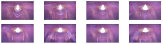 Given the absence of public molten pool datasets, this experiment used an HDR camera to capture the molten pool images. The shapes of the weld pool and keyhole vary with different welding currents and speeds. To ensure the reliability and robustness of the segmentation model, the training dataset should be collected in as many different welding conditions as possible. Welding currents were randomly varied below 480 A, while welding speeds ranged between 280 mm/min and 360 mm/min. Figure 4 illustrates images of the molten pool obtained under different welding currents and speeds.