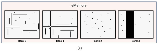 With constant improvements in terms of clock frequencies and transistor count following Moore’s law, new possibilities arise for designers and programmers for System-on-Chip (SoC) devices. More transistors for a given area allow designers to increase the number of peripherals in their systems without affecting their total area. Developers can then use these peripherals to write increasingly complex memory-greedy programs that require extensive use of the embedded memory (eMemory). As eMemory is a critical part of an SoC, it significantly influences the yield and quality of these devices. For this reason, semiconductor companies place great efforts in their testing and repairing procedures to ensure that each device shipped to the customer complies with the required hardware specifications within the operational conditions [1,2]. This is not a trivial task, as eMemory grows quadratically in capacity with each new generation. Semiconductor manufacturers must then face the escalating challenge of testing increasingly dense and complex memory. It is also essential to minimize the test time of each device as much as possible [3]. Test time is one of the main bottlenecks during the production process and is one of the main costs for manufacturers as they can usually test just a limited number of devices simultaneously. To reduce test time and to tackle the increasing complexity of eMemory, most companies have developed Memory Built-In Self-Test (MBIST) units. They are additional specialized hardware modules that support the Central Processing Unit (CPU) for testing memory, as proposed in [4,5,6]. MBIST units are directly embedded close to the memory circuitry in the SoC and can reduce test times by orders of magnitude by working with full-speed access.