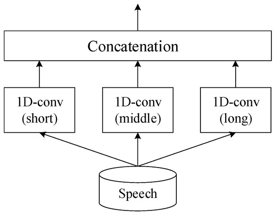 In the speaker extractor, three masks corresponding to different lengths of audio encoders are generated as the final output, as shown in Figure 13. Then, we use these masks and three parallel 1D convolutional layers corresponding to the respective audio encoders as the decoder to separate the target speech from the mixed speech. The operation of the decoder, de(∙), can be expressed as Equation (19).