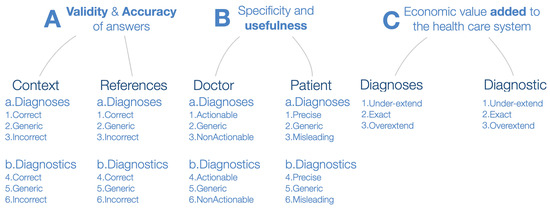 In previous works [15,32], we proposed a methodology to evaluate the domain-specific proficiency of ChatGPT or other LLMs, focusing on reliability and precision. These metrics are based on the context of the answers, their accuracy, and the quality of the references used. Our approach utilizes a three-tiered scoring scale (1–3) to assess various aspects, categorizing the context, references, and value added to the system as follows: