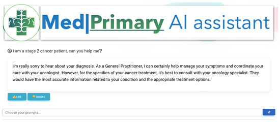 - Panagoulias, D.; Palamidas, F.; Virvou, M.; Tsihrintzis, G.A. Evaluation of ChatGPT-supported diagnosis, staging and treatment planning for the case of lung cancer. In Proceedings of the 20th ACS/IEEE International Conference on Computer Systems and Applications, AICSSA 2023, Giza, Egypt, 4–7 December 2023. [Google Scholar]