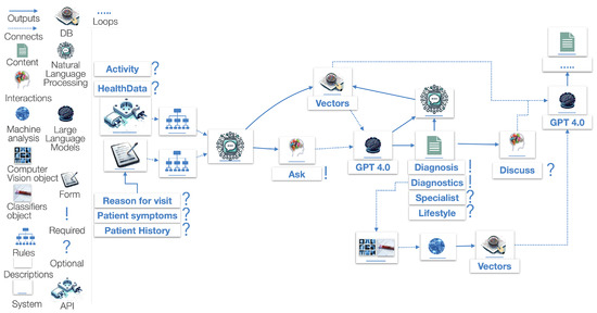- Panagoulias, D.P.; Virvou, M.; Tsihrintzis, G.A. Rule-Augmented Artificial Intelligence-empowered Systems for Medical Diagnosis using Large Language Models. In Proceedings of the 2023 IEEE 35th International Conference on Tools with Artificial Intelligence (ICTAI), Atlanta, GA, USA, 6–8 November 2023. [Google Scholar]