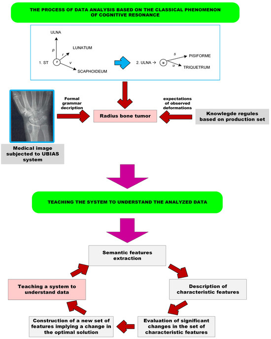 This work presents the possibilities of applying new cognitive systems to the task of analyzing medical images. The high efficiency of such analysis is due to the fact that it is based on the implementation of recognition processes based on the methods of mathematical linguistics. Meaningful description allows for the unambiguous classification of the analyzed data due to the use of those elements that semantically unambiguously define the analyzed disease cases. This unambiguity in data description and interpretation becomes the most important aspect of the analysis of such data sets, where unambiguous interpretation is essential. The most sensitive images, due to the relevance of the data being description, are medical images. Therefore, this paper presents examples of the use of cognitive systems to analyze selected medical imaging using UBIAS systems. These systems are still being developed and have the advantage of being used in the processes of understanding medical image data. In this article, we have proposed and extended cognitive resonance-based systems that have achieved a higher performance in the semantic analysis of medical data and have the ability to self-learn and expand a knowledge base through the use of more efficient graph grammars.