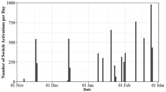 Number of on/off switch activations by several pre-treatment trucks during the 2022–2023 season.