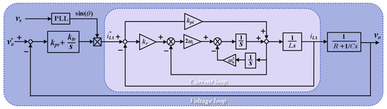 where kpi and kr are proportional gain and resonant gain, respectively, while ω0 and ωc represent the resonant frequency and cut-off frequency. A block diagram of the double closed-loop control strategy transfer function is shown in Figure 7.