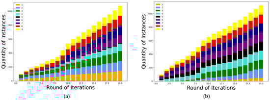 Figure 7 shows the distribution of different types of samples input to the model in each round after using the sample selection equalizer. It can be seen that the nine types of samples basically meet the equilibrium conditions and can provide a good training environment for the sample to resist noise data.