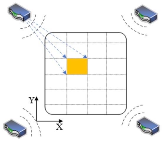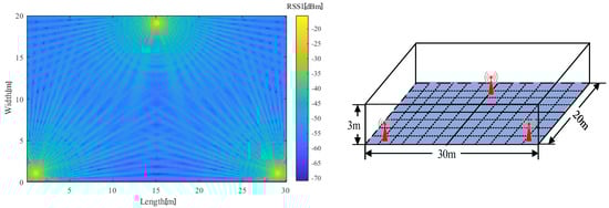 In [53], the quadtree algorithm is used to divide the location region in the offline stage and the partitioned data is stored in the form of grid. The online stage utilizes quad-tree search locking to narrow down the positioning range and analyzes the RSSI propagation distance differences in different directions. Taking Figure 12 as an example, it can be seen that the change in RSSI of AP in the x-direction is significantly larger than the change in the y-direction. Based on this, the RSSI Euclidean distance is improved by using the correlation coefficient to determine the nearest K reference points, combined finally with the idea of entropy weight for positioning. Unlike the previous method in [53] where regions are divided, in [54] the K-Means algorithm was used to divide the environment into different logarithmic distance propagation models in order to better characterize the indoor environment, and Bayesian location estimation was improved to obtain positioning results. The results showed that this method was superior to traditional Bayesian location estimation.