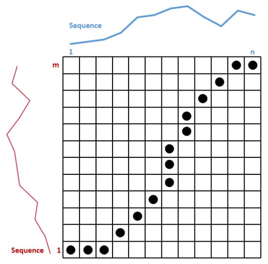 DTW [29] calculates the distance between reference data and test data. If the distance becomes smaller, it means the reference data waveform is more similar to the test data waveform. Figure 10 shows a schematic diagram of DTW.
