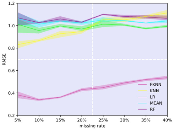 Taking into consideration the results from the above two experiments, the proposed missing imputation method achieves the maximum value of explainable variance, and the minimum value of RMSE for the listed 10%, 20%, and 30% missing rate cases, compared to the other three basic methods. In the case of 10% missing rate, all four methods achieve their respective maximum explainable variance values, minimum RMSE values.