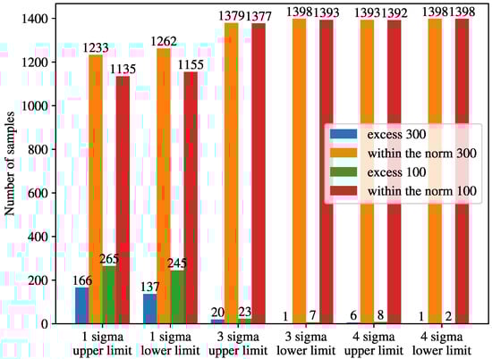 - The measured value does not fall within the sigma range for 50 consecutive times (the probability of such an event is approximately );