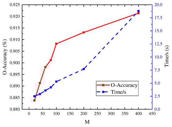 Figure 8 illustrates the -acc and identification time cost of the different exemplar set sizes. The LR model trained with exemplar set construction achieves an O-accuracy of 92.14% and an identification time cost of 18.21 s when using all the training data (M = 400). However, with a smaller exemplar set size of , the time cost is reduced to 6.73 s, while maintaining a slightly lower O-accuracy of 90.82%. The results show its ability to accelerate the training process while maintaining high accuracy.
