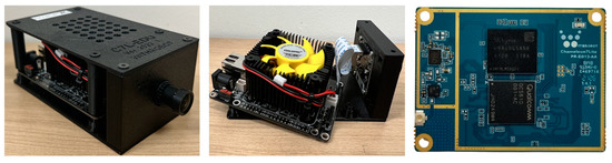 Along with performance enhancement, the proposed networks achieve real-time processing capacities in both desktop and embedded environments. Table 4 shows model sizes, computational costs, and inference times of seven networks in the desktop environment. Regarding the giga floating point operations per second (GFLOPs), SRGAN + YOLOv4 requires about five times more operations than YOLOv4-FTT and YOLOv4-SRm. YOLOv4-SSRm and YOLOv8-L only need approximately half the operations compared to YOLOv4-FTT and YOLOv4-SRm. This means that compared to the vanilla YOLOv4 and YOLOv8-L, YOLOv4-SSRm requires almost the same computational cost but provides 10% higher AP50 and 17~20% higher AP50VT on the self-built dataset. Thus, YOLOv4-SSRm can be a good compromise between detection performance and computational cost from the viewpoint of real-time embedded systems. Despite the differences in GFLOPs, inference times of all methods except SRGAN + YOLOv4 are similar to each other in Table 4. This is because of the parallel processing ability of the high-end GPU attached to the desktop. However, the differences in GFLOPs clearly affected the inference times in the embedded environment, where the computational resources are restricted. Table 5 shows the inference times in the embedded system with the Qualcomm QCS610 SoC in Figure 7. In this table, SRGAN + YOLOv4 is excluded because the SRGAN cannot be implemented in this environment due to unsupported operations it uses, and there is no need to do so because it cannot operate in real time. Unlike the desktop environment, differences in the inference times can be clearly seen in Table 5. It shows that YOLOv4 with the proposed simplified SR module (YOLOv4-SSRm) can handle more than 30 images per second, which definitely satisfies the condition of real-time processing.