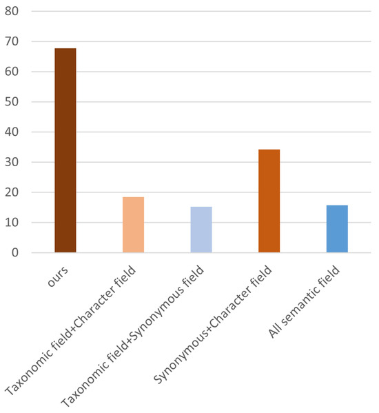Therefore, we used ChatGPT to generate words with specific semantic relationships to build semantic fields. These fields included taxonomic fields composed of hierarchical relationships and synonymous fields composed of synonymous or near-synonymous relationships. Additionally, we divided multi-word expressions into characters to form a special type of semantic field. We constructed these three types of semantic fields because we believed they have stronger semantic associations with words than other types of semantic fields.