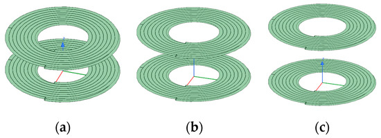 A magnetic coupling structure is used to transmit power through alternating magnetic fields in high-frequency resonant circuits. The alternating magnetic field can be divided into near and far regions, with magnetic induction being the main source in the near region and radiation being the main source in the far region [21]. Energy is emitted outwards in the form of electromagnetic waves. Magnetic coupled wireless power transfer technology utilizes near-field transmission of energy. When the operating frequencies of the transmitting and receiving circuits are the same, energy can be effectively emitted. In wireless power transfer systems, the transmitting and receiving coils undertake the task of power transmission and are important links that affect power transfer. This article will focus on the coupling coils.