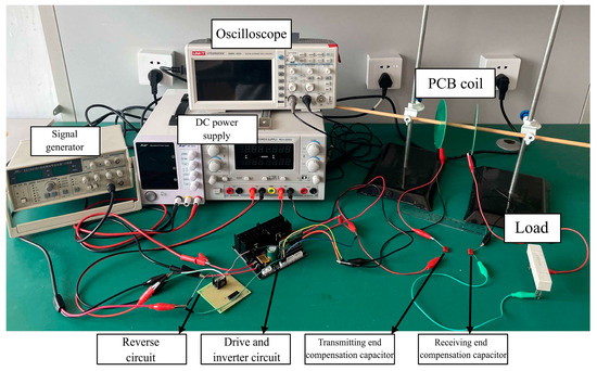 In this section, experimental verification is conducted on the Maxwell simulation analysis of PCB coils. Based on the analysis in the previous section, a physical PCB coil is constructed, and the quality factor of the PCB coil and the coupling coefficient at different spatial positions of the coil are evaluated [32,33]. A comparison and analysis are conducted using simulation data, and a wireless power transmission system experimental platform is built.