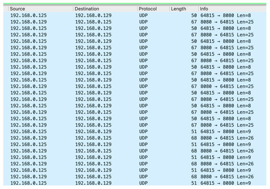 Wireshark is a popular network protocol analyzer that allows you to capture and examine network traffic in real time. Figure 3 shows the Wireshark result using the UDP protocol. When capturing UDP traffic using Wireshark, you will see a summary of each UDP datagram that is transmitted over the network. UDP datagram in Wireshark typically includes the following information: source IP address and port number, destination IP address and port number, the length of the datagram (including header and data).