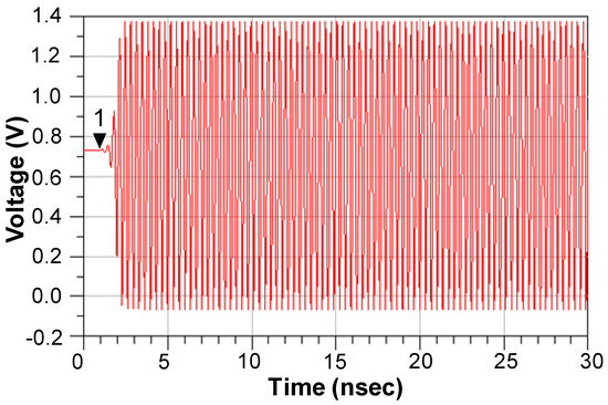 Simulated start-up condition with the threshold voltage of 0.446 V for the proposed class-AB VCO (VG = 0.6 V).