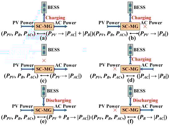 (a–f) SCMG operation modes and corresponding power flow.