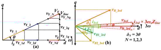 It is clear that to control differential-mode power for power sharing, the sum of third harmonic voltages in-phase with third harmonic current should be zero, which will lead to a zero sum of third harmonic power while satisfying the condition in Equation (34).