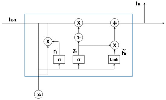 Finally, the maximum value of the probability in the number of categories is taken as the final prediction result. The whole GRU is depicted in Figure 5.