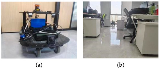 Robot physical object and experimental site map: (a) robot physical image; (b) experimental site map.