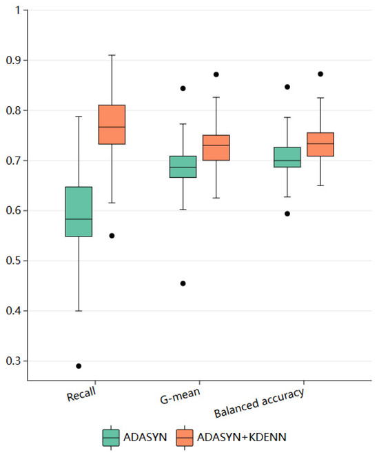 ADASYN+KDENN vs. ADASYN3.81 × 10−61.64 × 10−43.81 × 10−5