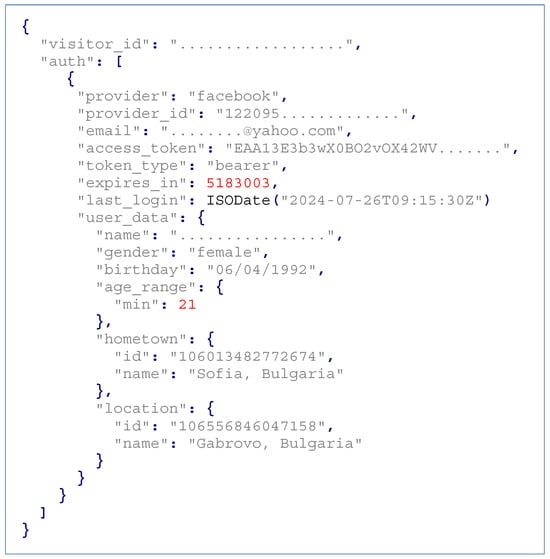 The “user_data” field encapsulates supplementary user information obtained from the OAuth provider during the authentication process. For example, when using OAuth registration through Facebook, this field can include detailed attributes such as public_profile, email, user_hometown, user_birthday, user_age_range, user_gender, user_link, user_friends, user_location, user_likes, user_photos, user_videos, and user_posts, depending on the permissions granted. These data facilitate the delivery of contextually relevant content and allow for the customization of interactions and communication based on the visitor’s personal attributes, preferences, and demographic information.