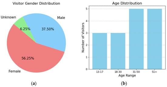 Traditional methods of visitor profiling in museums, such as demographic surveys and pre-visit questionnaires, have been extensively used to categorize visitors and predict their preferences [,]. These approaches involve collecting data such as age, gender, educational background, and cultural interests to understand visitor demographics and tailor the museum experience accordingly []. However, despite the usefulness of these methods, they are often constrained by their dependence on self-reported data, which can be prone to biases and inaccuracies.